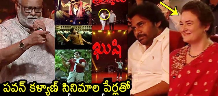 కాగా ఈ సినిమా ప్రీ రిలీజ్ ఈవెంట్ చాలా ఘనంగా నిర్వహించారు మూవీ మేకర్స్. ఈవెంట్ లో కీరవాణి పవన్ కళ్యాణ్ ఫ్యాన్స్ కి స్పెషల్ సర్ ప్రైజ్ ఇచ్చారు. కీరవాణి ఆధ్వర్యంలో పలువురు గాయకులు పవన్ కళ్యాణ్ నటించిన ప్రతి సినిమా టైటిల్ ని పాట రూపంలో మార్చి పాడారు. ఈ పాట చాలా చాలా హైలెట్ గా మారింది . "అక్కడ అమ్మాయి ఇక్కడ అబ్బాయి సినిమా నుంచి హరిహర వీరమల్లు" సినిమా వరకు ప్రతి సినిమా పేరుని హైలెట్ చేస్తూ తమదైన స్టైల్ లో గాయకులు పాటలు ఆలపించారు.