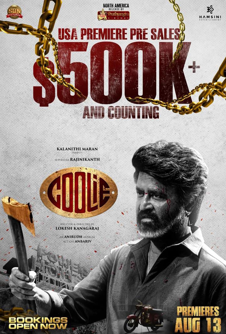దానికి అద్భుతమైన రెస్పాన్స్ జనాల నుండి లభించింది. ఈ సినిమాను ఆగస్టు 14 వ తేదీన ప్రపంచ వ్యాప్తంగా భారీ ఎత్తున విడుదల చేయనున్నారు. ఈ సినిమా విడుదల తేదీ దగ్గర పడడంతో కొన్ని రోజుల క్రితమే ఈ సినిమాకు సంబంధించిన యూ ఎస్ ఏ ప్రీమియర్స్ బుకింగ్స్ ఓపెన్ అయ్యాయి. ఈ మూవీ యొక్క ప్రీమియర్ బుకింగ్స్ కి ప్రేక్షకుల నుండి అద్భుతమైన రెస్పాన్స్ లభిస్తుంది. దానితో ఇప్పటికే ఈ మూవీ యూ ఎస్ ఏ ప్రీమియర్స్ 500 కే ప్లస్ ప్లీజ్ సేల్స్ లో జరుపుకుంది. ఇలా ఈ మూవీ విడుదలకు ముందే యూ ఎస్ ఏ లో అదిరిపోయే రేంజ్ రికార్డులను సొంతం చేసుకుంది.