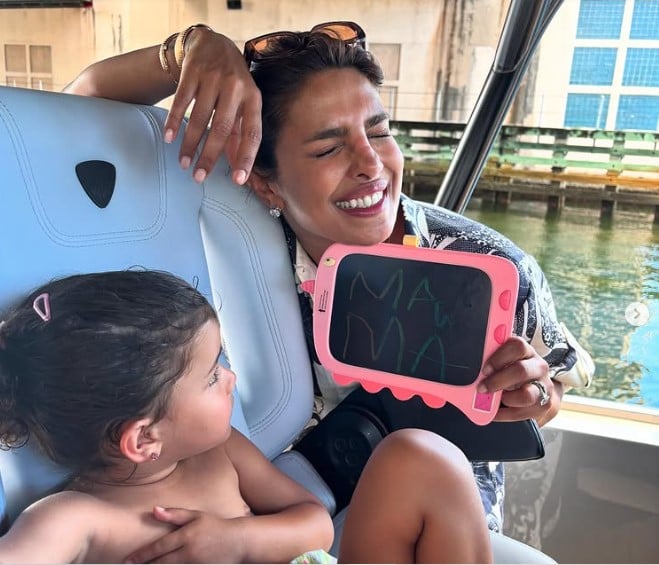 The pictures that priyanka chopra has shared on instagram include some old vacation photos. In one, daughter Malti is having a lot of fun. In some pictures, priyanka is playing with her daughter Malti.