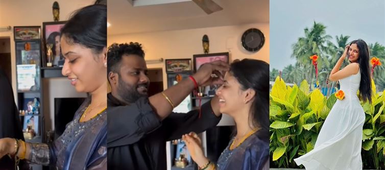 తాజాగా రాఖీ పండుగ సందర్భంగా శ్రీదేవి రాఖీ కడుతున్న సమయంలో మెడలో పసుపు తాడు వేసుకొని కనిపించింది. అయితే కొత్తగా పెళ్లైన వారి మెడలో ఇలాంటి పసుపు తాడు కనిపిస్తుంది. అయితే అలాంటి తాడే శ్రీదేవి మెడలో కూడా కనిపించడంతో చాలామంది ఇదేంటి శ్రీదేవి పెళ్లి చేసుకుందా.. మెడలో ఆ పసుపు తాడు ఏంటి అని అందరూ షాక్ అవుతున్నారు.ప్రస్తుతం దీనికి సంబంధించిన వీడియో సోషల్ మీడియాలో వైరల్ గా మారింది. ఇక మరి కొంతమందేమో శ్రీదేవి ఏదైనా కొత్త సినిమాలో నటిస్తుంది కావచ్చు.అందుకే అలా మెడలో పసుపు తాడుతో కనిపించింది అని కామెంట్స్ పెడుతున్నారు.