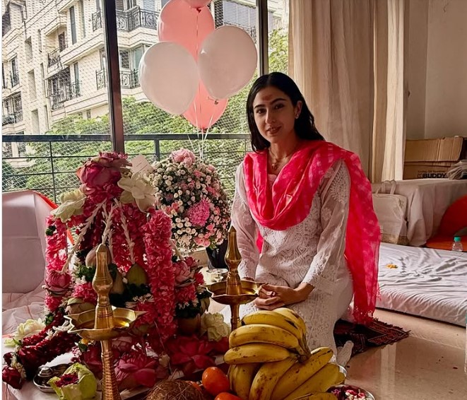 Sara ali Khan has shared a post on her instagram account. She is seen wearing a white suit and a pink dupatta. sara has a tilak on her forehead. She is sitting in front of the chowki, on which god is seated. With this post, sara has written the caption, 'Thank you from the bottom of my heart for your wishes'.