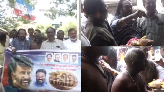 There is a great craze among fans about Rajinikanth. On Tuesday, one of his fans performed a special Puja at the Veilukanthamman temple in Thirupparankundram, Madurai. The fan has performed this Puja for the success of Rajinikanth's upcoming film 'Coolie'.