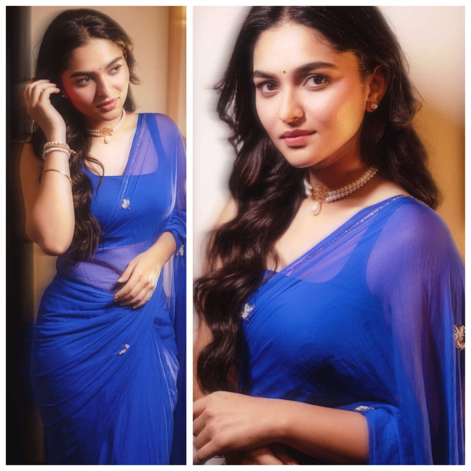 మూవీ తర్వాత నుండి ఈమెకు సూపర్ సాలిడ్ క్రేజ్ ఉన్న సినిమాలలో అవకాశాలు దక్కుతున్నాయి. సినిమాలలో మాత్రమే కాకుండా సోషల్ మీడియాలో కూడా తన అందాలను ఆరబోస్తూ వస్తుంది. ఇప్పటివరకు ఈమెకు సంబంధించిన ఎన్నో ఫోటోలు సూపర్ గా వైరల్ కూడా అయ్యాయి. తాజాగా కూడా ఈమెకు సంబంధించిన కొన్ని ఫోటోలు వైరల్ అవుతున్నాయి. తాజాగా ఈ బ్యూటీ పలుచటి బ్లూ కలర్ శారీని కట్టుకొని అందుకు తగిన బ్లూ కలర్ స్లీవ్ లెస్ బ్లౌజ్ ను ధరించి తన నడుము అందాలు ప్రదర్శితం అయ్యేలా ఫోటోలకు స్టిల్స్ ఇచ్చింది. ప్రస్తుతం ఆ ఫోటోలు సోషల్ మీడియాలో ఫుల్ గా వైరల్ అవుతున్నాయి.