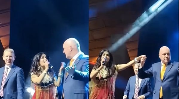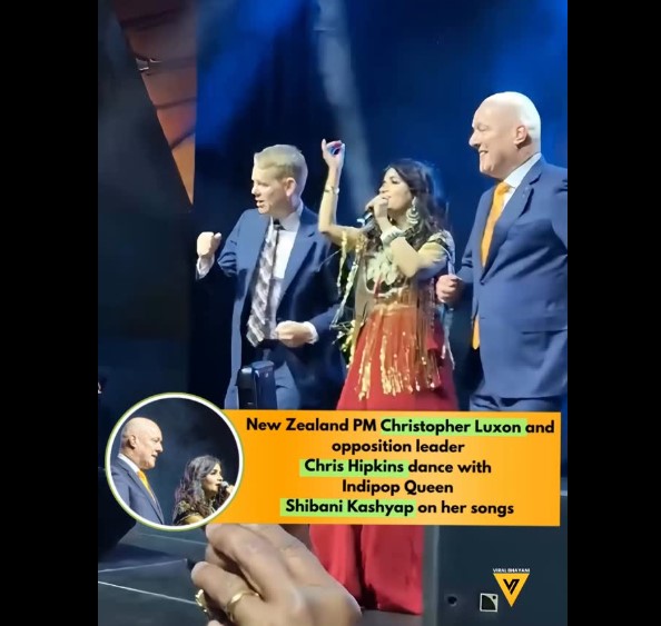 In the viral video, new zealand prime minister Christopher Luxon first listens to Shibani's song carefully on the stage. After that, he was seen dancing a little. Further, Shibani holds his hand and asks him to dance. new zealand prime minister and opposition leader dance together to Shibani's songs.