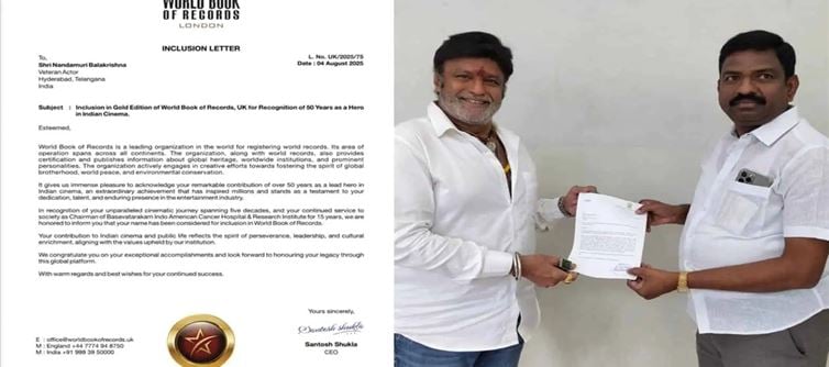 అయితే ఈయన హాస్పిటల్ పేరు మీద చేస్తున్న సేవా కార్యక్రమాలను గుర్తించి యూకే లోని వరల్డ్ బుక్ ఆఫ్ రికార్డ్స్ లో గోల్డ్ ఎడిషన్ గుర్తింపును ఇచ్చింది. అయితే ఇప్పటివరకు మన దేశ సినీ చరిత్రలో ఇలాంటి గౌరవాన్ని ఏ ఒక్క హీరో కూడా అందుకోలేదు.కానీ మొట్టమొదటిసారి బాలకృష్ణ ఈ అరుదైన గౌరవాన్ని అందుకోవడం నిజంగా గ్రేట్ అని చెప్పుకోవచ్చు. అంతేకాదు బాలకృష్ణకి ఈ అరుదైన గౌరవం వచ్చినందుకు గానూ ఆగస్టు 30వ తేదీన హైదరాబాదులో జరిగే కార్యక్రమాల్లో బాలయ్య బాబుని సత్కరించబోతున్నారు. ఇక ప్రస్తుతం ఈ విషయం బయటపడడంతో చాలామంది నందమూరి అభిమానులు ఈ విషయాన్ని సోషల్ మీడియాలో వైరల్ చేస్తూ బాలకృష్ణని తెగ పొగడుతున్నారు