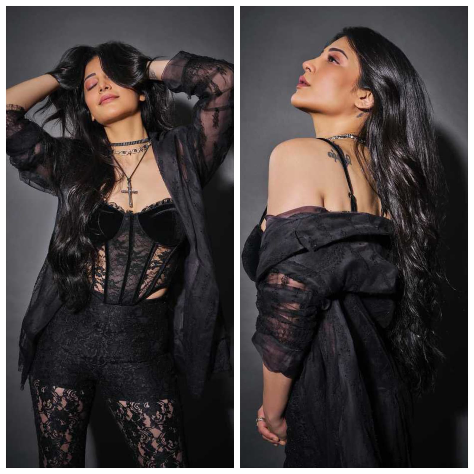 ఎన్నో సినిమాలలో తన అదిరిపోయే రేంజ్ అందాలను ఆరబోసిన శృతి హాసన్ అప్పుడప్పుడు తన సోషల్ మీడియా అకౌంట్లో కూడా తనకు సంబంధించిన హాట్ ఫోటోలను పోస్ట్ చేస్తూ ఉంటుంది. తాజాగా ఈ బ్యూటీ కి సంబంధించిన కొన్ని హాట్ లుక్ లో ఉన్న ఫోటోలు వైరల్ అవుతున్నాయి. తాజాగా ఈమె అదిరిపోయే వెరీ హాట్ లుక్ లో ఉన్న బ్లాక్ కలర్ డ్రెస్ ను వేసుకొని తాను వేసుకున్న షర్టు బటన్స్ మొత్తం విప్పేసి తన హాట్ ఎద అందాలు మరియు బ్యాక్ అందాలు ప్రదర్శితం అయ్యేలా ఫోటోలకు స్టిల్స్ ఇచ్చింది. ప్రస్తుతం శృతి హాసన్ కు సంబంధించిన ఈ ఫోటోలు వైరల్ అవుతున్నాయి.