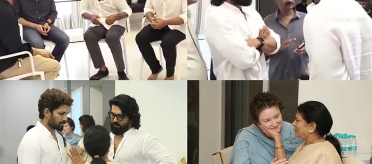 వార్త తెలిసిన వెంటనే మెగాస్టార్ చిరంజీవి అక్కడికి చేరుకుని అన్ని దగ్గరుండి చూసుకోవడం అందరినీ కదిలించింది. ఈ క్రమంలో అల్లు అర్జున్ – రామ్చరణ్ కలిసి కూర్చుని జరిగే కార్యక్రమాలపై సీరియస్గా మాట్లాడుకోవడం, మేనల్లుడు చరణ్ను అరవింద్ ఆప్యాయంగా హత్తుకోవడం అభిమానులకు హృద్యంగా అనిపించింది. అదే సమయంలో సాయి ధరమ్ తేజ్, వైష్ణవ్ తేజ్, వరుణ్ తేజ్ లు కూడా హాజరై, కుటుంబ బంధానికి నిలువెత్తు నిదర్శనంగా నిలిచారు. అంతే కాదు, పవన్ కళ్యాణ్ భార్య అన్నాతో బన్నీ భార్య స్నేహరెడ్డి ఆప్యాయంగా ముచ్చటించుకోవడం, ఒక సందర్భంలో రామ్చరణ్ చేయి పట్టుకుని బన్నీ ఏదో పనిలోకి తీసుకెళ్లడం సోషల్ మీడియాలో వైరల్ అవుతూ అభిమానులను కదిలిస్తున్నాయి.ఇది చూసి అభిమానుల్లో ఒకే మాట – “మెగా – అల్లు కుటుంబాల్లో విభేదాలే లేవు..!” అనడమే.