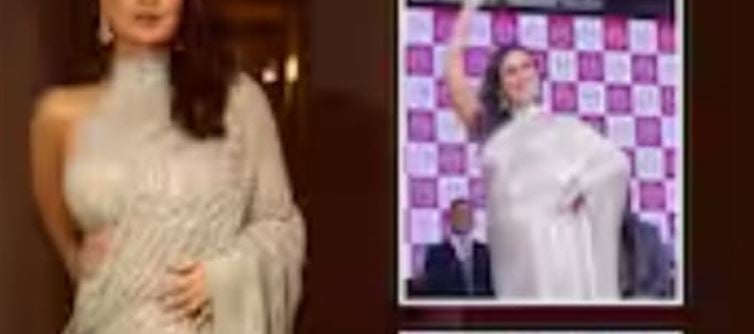 She appeared in a silver shimmery saree, looking graceful and elegant.
