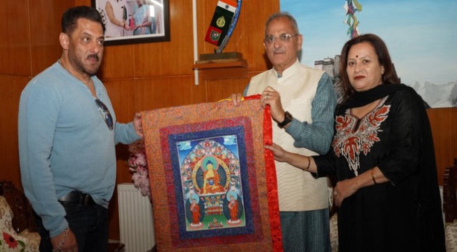 "Bollywood icon salman khan reached raj Niwas in Leh and met Lieutenant governor Kavinder Gupta."