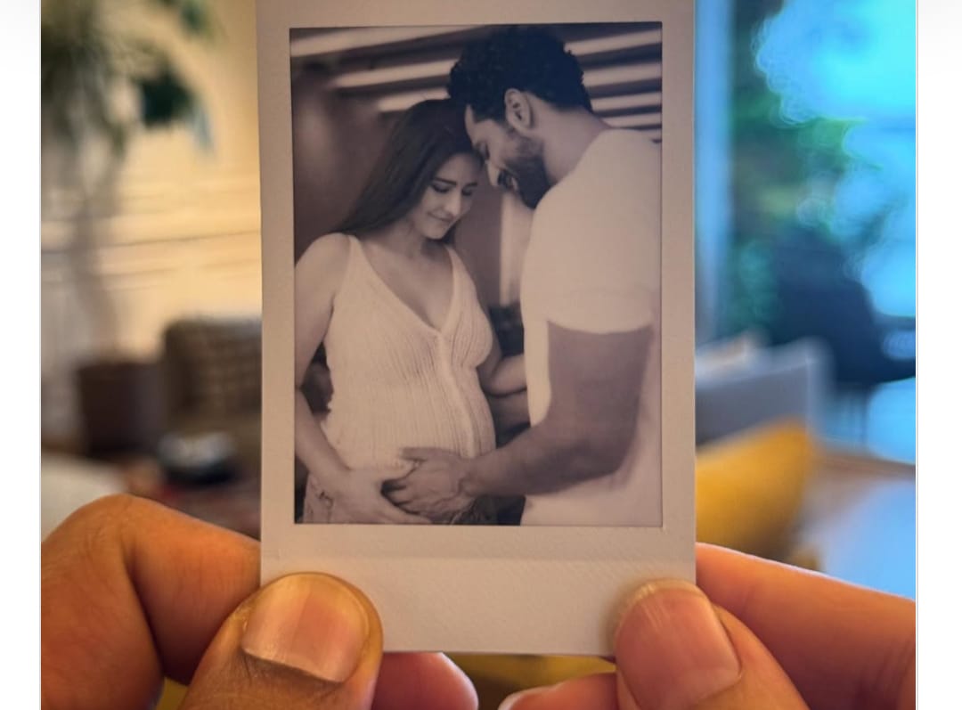 The photo shows Vicky gently cradling Katrina’s baby bump.