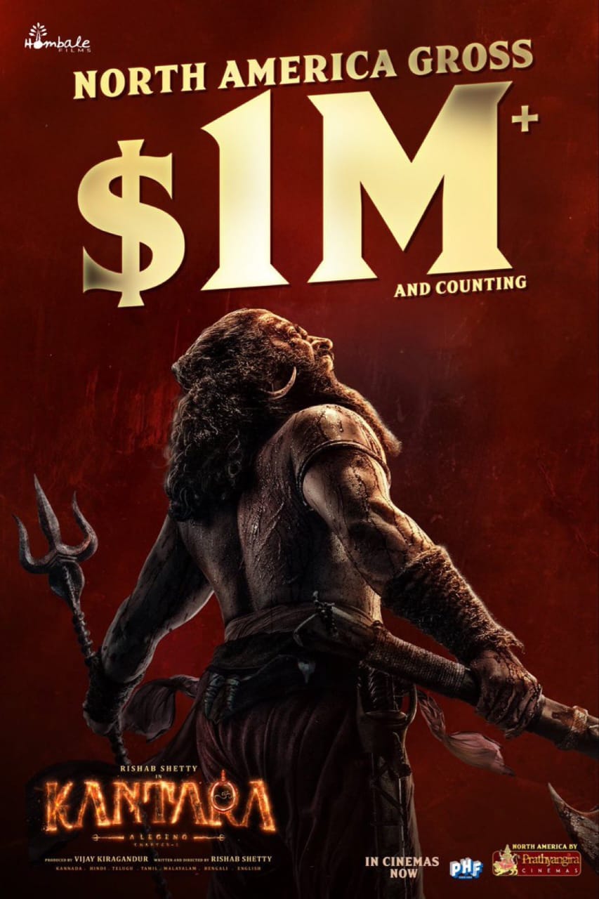 భారీ అంచనాల నడుమ విడుదల అయిన ఈ సినిమాకు విడుదల అయిన మొదటి రోజు మొదటి షో కే బాక్సా ఫీస్ దగ్గర అద్భుతమైన పాజిటివ్ టాక్ వచ్చింది. దానితో ప్రస్తుతం ఈ సినిమాకు సూపర్ సాలిడ్ కలెక్షన్లు దక్కుతున్నాయి. ఈ మూవీ ఇప్పటికే నార్త్ అమెరికాలో రేర్ మార్క్ కలెక్షన్లను టచ్ చేసింది. తాజాగా ఈ మూవీ బృందం అందుకు సంబంధించిన అధికారిక ప్రకటనను కూడా విడుదల చేసింది. తాజాగా ఈ మూవీ యూనిట్ కాంతారా చాప్టర్ 1  మూవీ నార్త్ అమెరికాలో 1 మిలియన్ ప్లస్ కలెక్షన్లను వసూలు చేసినట్లు అధికారికంగా ప్రకటిస్తూ ఓ పోస్టర్ను విడుదల చేసింది.