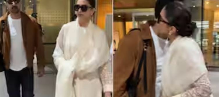 Deepika looked elegant in a traditional all-white outfit paired with oversized sunglasses.