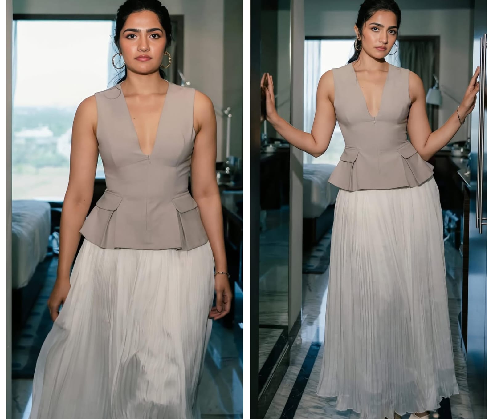ప్రస్తుతం ఈమె జూనియర్ ఎన్టీఆర్ హీరోగా ప్రశాంత్ నీల్ దర్శకత్వంలో రూపొందుతున్న సినిమాలు హీరోయిన్గా నటిస్తోంది. తాజాగా ఈ నటికి సంబంధించిన కొన్ని ఫోటోలు వైరల్ అవుతున్నాయి. అందులో ఈమె తన ఏద అందాలు ప్రదర్శితం అయ్యేలా ఫోటోలకు స్టిల్స్ ఇచ్చింది. ఈమె గతంలో ఈ స్థాయిలో ఎప్పుడు అందాలను ఆరబోయకపోవడంతో తాజాగా రుక్మిణి వసంత్ కి సంబంధించిన ఈ వెరీ హాట్ లుక్ లో ఉన్న ఫోటోలు సూపర్ గా వైరల్ అవుతున్నాయి.