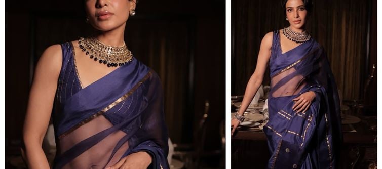 తాజాగా సమంత అదిరిపోయే లుక్ లో ఉన్న పలుచటి బ్లూ కలర్ శారీని కట్టుకొని అందుకు తగిన బ్లూ కలర్ స్లీవ్ లెస్ బ్లౌజ్ ను ధరించి తన నడుము అందాలు ప్రదర్శితం అయ్యేలా కొన్ని ఫోటోలకు స్టిల్స్ ఇచ్చింది. ఈ ఫోటోలలో ఈ బ్యూటీ సన్నగా నజుగ్గా ఉన్నా కూడా తన నడుమందాలతో ప్రేక్షకులను ఆ కట్టి పడేసింది. దానితో సమంత కు సంబంధించిన ఈ నడుమందాలు ప్రదర్శితం అయ్యేలా ఉన్న ఫోటోలు సూపర్ గా వైరల్ అవుతున్నాయి.