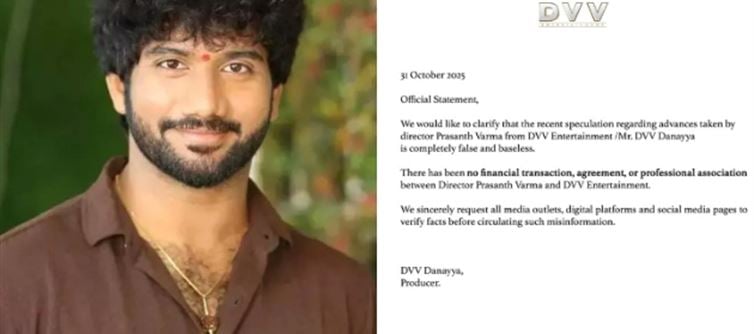 ఈ అధికారిక క్లారిటీతో సోషల్ మీడియాలో జరుగుతున్న గాసిప్స్ ఒక్కసారిగా కూల్ అయ్యాయి. ఎందుకంటే, కొద్ది గంటల క్రితమే “ప్రశాంత్ వర్మ - డివివి కలయిక భారీ స్థాయిలో జరగబోతోందట” అని కొన్ని పేజీలు పోస్టులు వేయగా, మరికొన్ని మాత్రం “డబ్బులు తీసుకుని ప్రాజెక్ట్ వదిలేశాడు” అంటూ నెగిటివ్ గా ట్రోల్ చేయడం మొదలుపెట్టాయి. కానీ ఇప్పుడు డివివి ఎంటర్టైన్మెంట్స్ ఇచ్చిన ఈ ప్రెస్ నోట్తో ఆ ప్రచారాలకు పూర్తిగా ముగింపు పలికినట్టే.ప్రశాంత్ వర్మ విషయానికొస్తే – ఆయన ఇప్పుడు తన సూపర్ హీరో యూనివర్స్ మీద దృష్టి పెట్టారు. హనుమాన్ సినిమా విజయంతో దేశవ్యాప్తంగా గుర్తింపు తెచ్చుకున్న ఆయన, ప్రస్తుతం అదే యూనివర్స్లో మరో భారీ ప్రాజెక్ట్ను రూపొందిస్తున్నారు. ఈ సమయంలో ఇలా తప్పుడు రూమర్స్ రావడం ఆయన ఫ్యాన్స్కు కూడా నిరాశ కలిగించింది. ప్రస్తుతానికి, “ప్రశాంత్ వర్మ డివివి ఎంటర్టైన్మెంట్స్ను చీట్ చేశాడన్న వార్తలు పూర్తిగా అబద్ధం” అని స్పష్టంగా చెప్పవచ్చు.