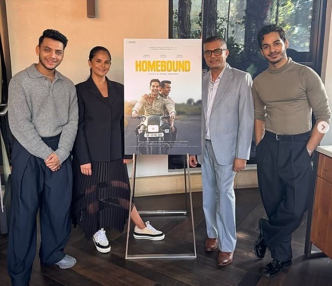 He posted two pictures from the event featuring the stars of Homebound, ishaan Khattar and vishal Jethwa, along with other attendees.