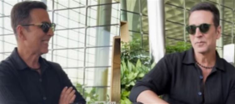 Bollywood star akshay kumar was seen in a cheerful mood at the mumbai airport on Friday.
