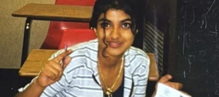 The photo shows priyanka at age 14, during her school years.