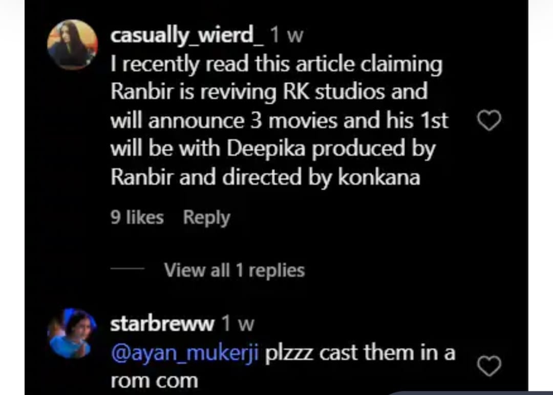 Others referenced a recent rumour suggesting Ranbir might be reviving rk Studios and planning films—including one starring Deepika, directed by Konkona Sen Sharma.