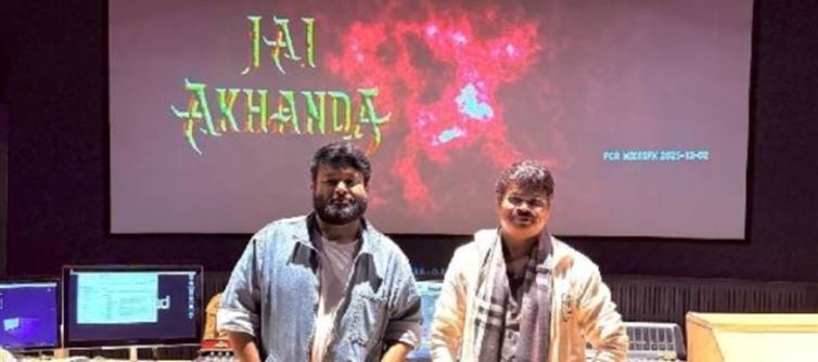 సాధారణంగా సీక్వెల్స్, ప్రీక్వెల్స్ టైటిళ్లను విడుదలైన సినిమా క్లైమాక్స్లో ‘క్లైమాక్స్ కార్డ్’ రూపంలో చూపించడం ట్రెండ్గా మారింది. సరిగ్గా ఇదే తరహాలో ‘అఖండ 2: తాండవం’ క్లైమాక్స్లో కూడా పార్ట్ 3 గురించి రివీల్ చేయబోతున్నారని సమాచారం.ఈ నేపథ్యంలో, సోషల్ మీడియాలో ఒక ఫోటో మాస్ వైరల్ అవుతోంది. ‘అఖండ 2’ పోస్ట్ ప్రొడక్షన్ కార్యక్రమాలను ముగించుకున్న చిత్రబృందం... సంగీత దర్శకుడు ఎస్. థమన్ రికార్డింగ్ స్టూడియోలో ఉన్న ఒక ఫోటోను విడుదల చేసింది. ఆ ఫోటోలో, వెనుక స్క్రీన్పై ‘జై అఖండ’ అనే అక్షరాలు స్పష్టంగా కనిపించాయి.