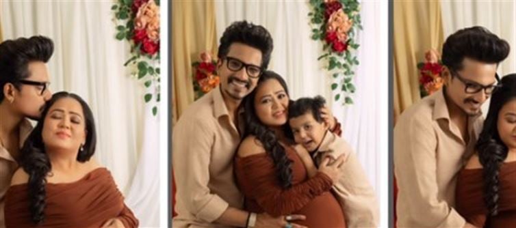 In one photo, Harsh and Golu are dressed in matching outfits, while Bharti stuns in a brown off-shoulder dress, radiating a glowing, pregnant look.