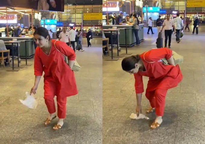 This simple gesture of keeping the surroundings clean caught the attention of paparazzi, who recorded the moment.