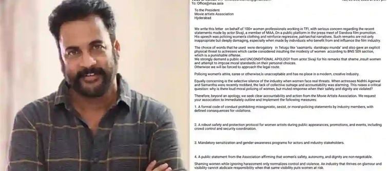 హీరోయిన్ల డ్రెస్సింగ్ స్టైల్ గురించి శివాజీ చేసిన వ్యాఖ్యలు అభ్యంతరకరంగా ఉన్నాయని మహిళా సంఘాలు మరియు సినీ ప్రముఖులు భావిస్తున్నారు. ఒక బాధ్యతాయుతమైన పదవిలో ఉండి, సమాజంపై ప్రభావం చూపే నటుడు ఇలాంటి వ్యాఖ్యలు చేయడం తగదని పలువురు ఫైర్ అయిపోయారు. ఈ వ్యవహారంపై టాలీవుడ్లోని మహిళా శక్తి ఏకమైంది. ‘వాయిస్ ఆఫ్ ఉమెన్’ బృందం తరఫున ప్రముఖ సినీ ప్రముఖులు ఈ విషయాన్ని తీవ్రంగా పరిగణించారు. దర్శకురాలు నందిని రెడ్డి, నిర్మాతలు సుప్రియ యార్లగడ్డ, స్వప్న దత్, నటీమణులు లక్ష్మీ మంచు, ఝాన్సీ తదితరులు ‘మా’ (MAA) అసోసియేషన్కు అధికారికంగా ఫిర్యాదు చేశారు.