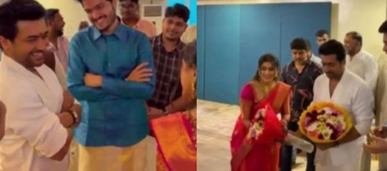 పెళ్లి వేదికపై సూర్య అడుగుపెట్టగానే అక్కడ ఉన్న అతిథులంతా ఒక్కసారిగా ఆశ్చర్యానికి గురయ్యారు. వైట్ అండ్ వైట్ అవుట్ఫిట్, సన్ గ్లాసెస్తో స్టన్నింగ్ లుక్లో కనిపించిన సూర్యను చూసి అందరూ మౌనమైపోయారు. అభిమానిని ప్రత్యేకంగా అభినందిస్తూ, పెళ్లి జంటకు శుభాకాంక్షలు తెలిపారు. సూర్యను ప్రత్యక్షంగా చూసిన ఆ వధువు ఆనందానికి అవధుల్లేవు. ఆమె ముఖంలో కనిపించిన ఆ భావోద్వేగ క్షణాలు అందరి హృదయాలను తాకాయి.ఈ సంఘటనకు సంబంధించిన వీడియో సోషల్ మీడియాలో షేర్ అవుతూనే లక్షల సంఖ్యలో వ్యూస్ సంపాదిస్తోంది. ముఖ్యంగా వధువు సూర్యను చూసిన వెంటనే చూపించిన రియాక్షన్ నెటిజన్లను బాగా ఆకట్టుకుంటోంది. ఈ వీడియో చూసిన అభిమానులు“ఇలాంటి హీరోలు ఉండటం గర్వకారణం”,“సూర్య నిజంగా గోల్డ్ హార్ట్”,“అభిమానుల్ని దేవుడిలా చూసే హీరో” అంటూ కామెంట్లు పెడుతున్నారు.