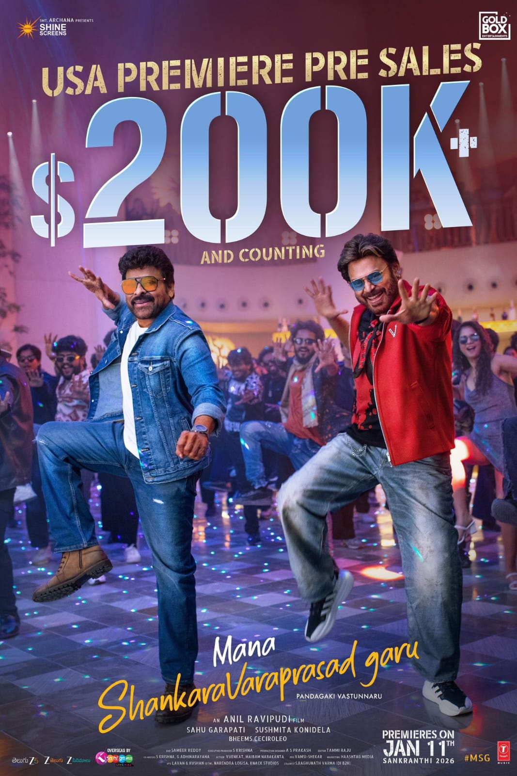 ఇది ఇలా ఉంటే ఇప్పటికే ఈ సినిమాకు సంబంధించిన యు ఎస్ ఏ ప్రీమియర్స్ బుకింగ్స్ ఓపెన్ అయ్యాయి. ఈ మూవీ పై ప్రేక్షకుల్లో మంచి అంచనాలు ఉండడంతో ఈ మూవీ యూ ఎస్ ఏ ప్రీమియర్స్ బుకింగ్స్ కి మంచి రెస్పాన్స్ జనాల నుండి లభిస్తుంది. తాజాగా ఈ మూవీ బృందం ఇప్పటి వరకు ఈ సినిమాకు యూ ఎస్ ఏ ప్రీమియర్స్ ఫ్రీ సేల్స్ ద్వారా ఎన్ని కలెక్షన్స్ వచ్చాయి అనే విషయాన్ని అధికారికంగా ప్రకటిస్తూ ఓ పోస్టర్ను విడుదల చేశారు. తాజాగా ఈ మూవీ బృందం ఈ సినిమాకు ఇప్పటి వరకు యూ ఎస్ ఏ ప్రీమియర్ ప్రీ సేల్స్ ద్వారా 200 కే ప్లస్ కలెక్షన్లు వచ్చినట్లు ఈ మూవీ బృందం అధికారికంగా ప్రకటిస్తూ ఓ పోస్టర్ను విడుదల చేశారు. ప్రస్తుతం ఆ పోస్టర్ వైరల్ అవుతుంది. ఈ మూవీ లో మోస్ట్ బ్యూటిఫుల్ అండ్ వెరీ టాలెంటెడ్ నటి మనులలో ఒకరు అయినటువంటి నయనతార హీరోయిన్గా నటించగా ... అనిల్ రావిపూడి ఈ సినిమాకు దర్శకత్వం వహించాడు.
