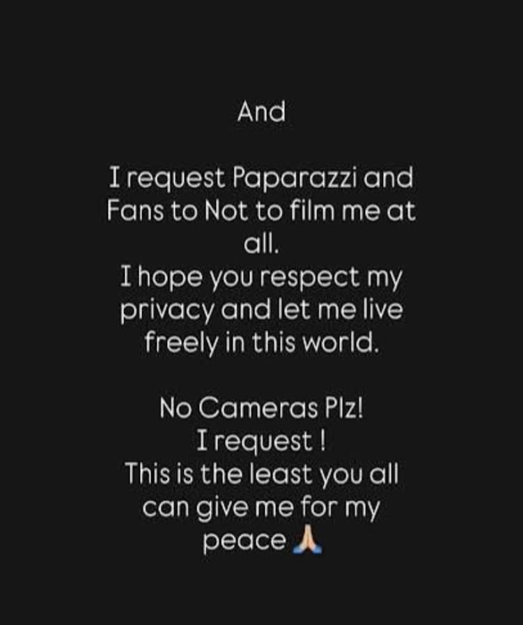 She appealed for privacy, stating that this was the “least” people could give her for her peace of mind.