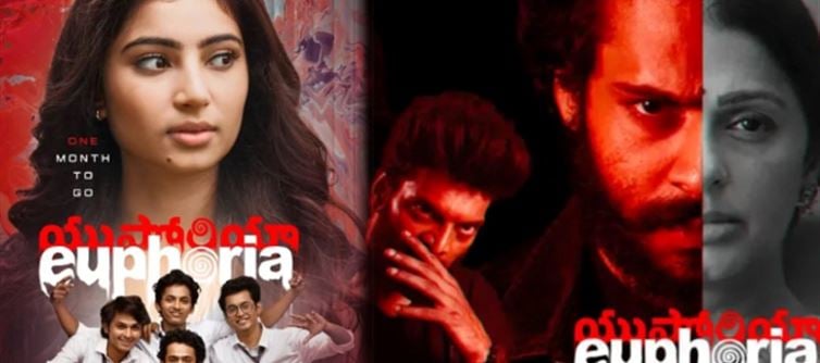 ప్రస్తుతం సమాజంలో జరుగుతున్న యువతరాన్ని దృష్టిలో పెట్టుకొని యుఫోరియా చిత్రాన్ని తెరకెక్కించారు. చైత్ర (సారా అర్జున్) ఒక పెద్దింటి అమ్మాయిగా చదువులో టాపర్ , ఐఏఎస్ కావాలని పట్టుదలతో పరీక్షలకు సిద్ధమవుతుంటుంది. కానీ ఒకరోజు తన స్నేహితులు ఒక పబ్ పార్టీకి పిలవడంతో తల్లిదండ్రులు అనుమతితోనే ఆ పార్టీకి వెళ్తుంది. అయితే అక్కడ వికాశ్ (విగ్నేష్ గవిరెడ్డి)తో అతని స్నేహితులకు కూడా పరిచయం అవుతుంది చైత్ర . చైత్ర అందానికి ఫిదా అయిన వికాశ్ ఆమె పైన కన్నేస్తాడు. అలా తిరిగి ఇంటికి వెళుతున్న సమయంలో కారులో తీసుకెళ్లి రేప్ చేస్తారు. దీంతో ఈ విషయంపై చైత్ర ఇంట్లో చెప్పగా వారు పోలీస్ కంప్లైంట్ చేస్తారు. అలా చైత్ర చెప్పిన ఆధారలతో జయదేవ్ (గౌతమ్ మీనన్) అతని టీమ్ పారిపోయిన వికాశ్ అతని స్నేహితులను పట్టుకుంటారు. అయితే వారంతా కూడా మైనర్ కావడం, వాళ్ల పేర్లు చెప్పకుండా, పేరెంట్స్ పలుకుబడి ఉన్నవాళ్లు కావడంతో మీడియా ముందు వారి పేర్లు బయటపెట్టి ఒక సంచలనం సృష్టిస్తారు జయదేవ్. అందులో వికాస్ తల్లి వింధ్య (భూమిక) , తండ్రి (రోహిత్) పేర్లు కూడా బయట పెట్టడంతో, వింధ్య స్కూల్ ప్రిన్సిపల్ కావడం చేత తన కొడుకు రేపిస్ట్ అని విమర్శలు కూడా వినిపిస్తాయి. దీంతో వికాస్ అతని స్నేహితుల పైన ఫోక్స్ కేస్ పెట్టగా, వింధ్య కుటుంబం తన కొడుకుని ఎలా బయటకు తీసుకురావాలని చూస్తూ ఉంటారు. కానీ వింధ్య మాత్రం తన కొడుకు శిక్ష పడాలని చూస్తుంది?. మరి వికాస్ , అతని స్నేహితులకి చైత్ర ఎలా శిక్ష వేయిస్తుంది? జయదేవ్ ఈ కేస్ ని ఎలా డీల్ చేశారనే విషయం తెలియాలి అంటే వెండితెర పైన చూడాల్సిందే.
