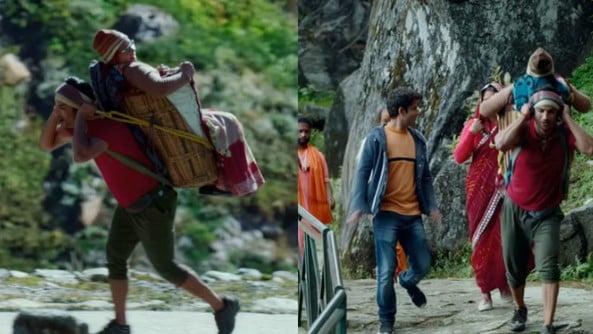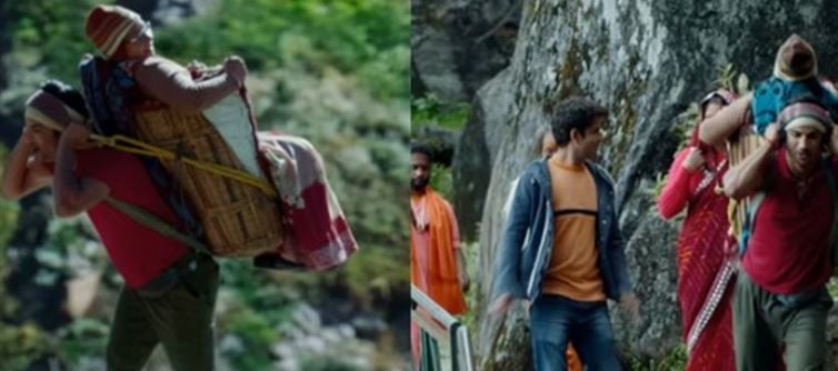 In the song, the lead actor escorts devotees to the kedarnath temple, displaying deep devotion to Lord Shiva.