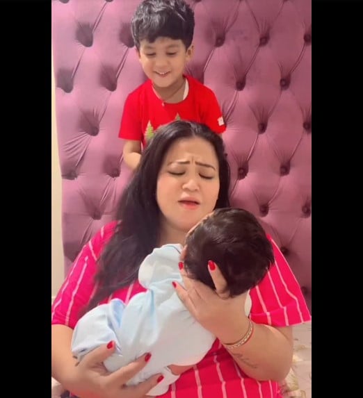In Bharti's recent video, Gola is actually teasing his mother in a humorous way. Bharti created this reel, in which she is seen mimicking her. Through the video, she may be trying to show what it's like these days raising two children, but she is thoroughly enjoying this phase of motherhood.