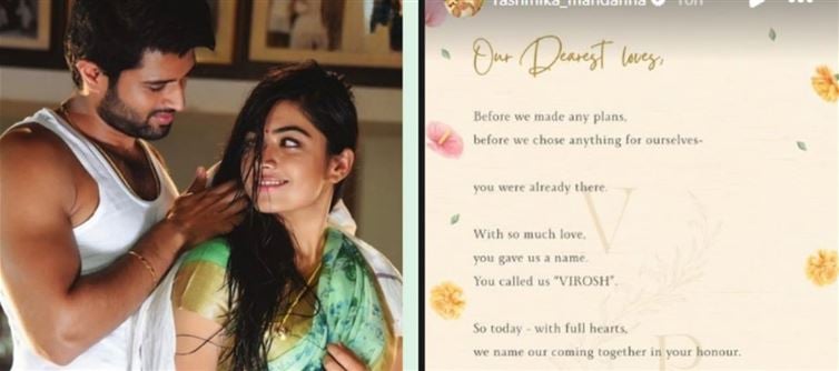 ఇటువంటి తరుణంలోనే ఆదివారం రాత్రి విజయ్,రష్మిక కలిసి జాయింట్ గా ఒక పోస్ట్ ని షేర్ చేశారు. మేము మా కోసం ఏదైనా ఎంచుకోవాలనుకునే లోపే అభిమానులే ఆ పనిని పూర్తి చేశారు. మా పెళ్లి విషయంలో అభిమానులు ఎంతో ప్రేమతో పెట్టినటువంటి పేరు "విరోష్"అనే పేరును మా వెడ్డింగ్ కార్డులో పెట్టాలని నిర్ణయించుకున్నామని తెలియజేశారు. అలాగే ఈ పోస్ట్ ప్రస్తుతం రాజస్థాన్లోని ఉదయపూర్ లో అత్యంత వైభవంగా ఫిబ్రవరి 26న వివాహం జరగనుందని అనంతరం అభిమానుల కోసం, సినీ ప్రముఖుల కోసం మార్చి 4వ తేదీన గ్రాండ్ వెడ్డింగ్ రిసెప్షన్ ని నిర్వహించబోతున్నామంటూ తెలియజేశారు.