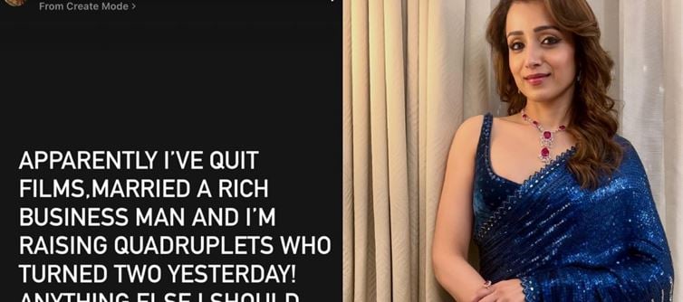 తాజాగా తన ఇంస్టాగ్రామ్ లో ఒక పోస్టుని షేర్ చేస్తూ.. నేను సినిమాలకు గుడ్ బై చెప్పేసానట, ఒక ధనవంతుడిని పెళ్లి చేసుకోబోతున్నానట, అంతేకాకుండా నిన్నటితో రెండేళ్లు నిండిన నలుగురు పిల్లలను కూడా తాను పెంచుతున్నానట! ఇంకా ఏమైనా యాడ్ చేయాలా లేకపోతే ఈరోజుకి ఈ కల్పిత కథల కోట పూర్తి అయ్యిందా అంటూ ఎద్దేవ చేస్తూ ఒక పోస్ట్ ని షేర్ చేసింది త్రిష. ఈ పోస్టు ద్వారా రెండు విషయాల పైన క్లారిటీ ఇచ్చింది.ఒకటి ఆమె సినిమాలను వదిలేయడం లేదని రెండు పెళ్లి పిల్లలు అని వస్తున్న వార్తలకు చెక్ పెట్టింది.