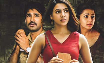 Samantha is all energy personified as the young, bold and independent Rachana aiming to prove herself as a talented reporter and ultimately gets caught in a murder web, and displays guts, fear, shock and grief perfectly with her spontaneous expressions. Aadhi Pinisetty is perfect with his voice and body language fitting for the role of the police officer trying to help Rachana out of the trouble. Rahul Ravindran as Samantha's pair is apt as the flirting crime reporter, while Bhumika is a surprise package and thrills with her expressions and looks, while Narain is adequate. The rest of the cast including Aadukalam Naren