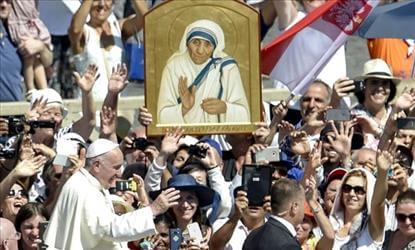 Sources from Vatican city have stated that Pope Francis has declared Nobel Peace Prize winner Mother Teresa, revered for her work among the poor in India, where they have declared and defined Blessed Teresa of Calcutta to be a Saint,” the Pope has said to a roar from the thousands gathered at St. Peter’s Square here, including many Indians who held or waved the Indian flag.