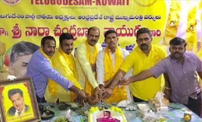 ఏపీ సీఎం చంద్రబాబు జన్మదిన వేడుకలను తెలుగు రాష్ట్రాల్లోనే కాకుండా విదేశాల్లో కూడా అభిమానులు ఘనంగా నిర్వహించారు. కువైట్లోని ఎస్వీఎస్ కార్గో ఆఫీసు ప్రాంగణంలో గురువారం చంద్రబాబు 68వ జన్మదిన వేడుకలను తెలుగుదేశం -కువైట్ శాఖ అధ్యక్షులు కుదరవల్లి సుధాకర్రావు ఆధ్వర్యంలో ఘనంగా జరిగాయి. ఈకార్యక్రమంలో ప్రసంగించిన సుధాకరరావు ఎన్టీఆర్ ఆదర్శంగా, చంద్రబాబు స్ఫూర్తితో కువైట్లో పలు సేవా కార్యక్రమాలు చేపడుతున్నామన్నారు. కనీసం రాజధాని కూడా లేకుండా విడిపోయిన ఏపీని పరిపాలన చాతుర్యంతో అగ్రస్థానంలో నిలపడానికి చంద్రబాబు చేస్తున్న కృషి మరువలేనిదన్నారు.