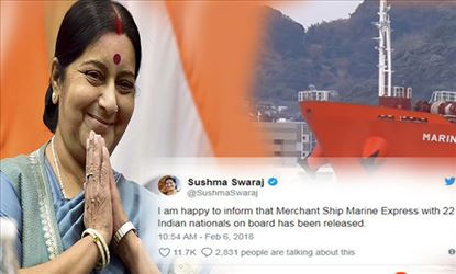 ఇదే తరహాలో నెల రోజుల క్రితం వేరొక నౌకని దొంగిలిచ్చినట్టుగా తెలుస్తోంది..అయితే భారత నావికులు ఉన్న నౌకని విడిపించడానికి వారికి తగిన డబ్బు చెల్లించడంతో భారత నావికులను విడుదల చేశారని తెలిపారు..అయితే ఈ విషయంపై సుష్మా స్వరాజ్ ట్విట్టర్ వేదికగా చాలా సంతోషకరమైన విషయం తెలిపారని కృతజ్ఞతలు తెలిపారు.