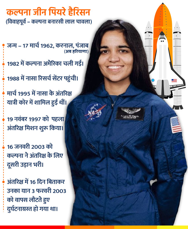 कल्पना चावला ने आज ही के दिन 19 नवंबर 1997 को अपना पहला अंतरिक्ष मिशन शुरू किया था। तब उनकी उम्र महज 35 साल थी। उन्होंने 6 अंतरिक्ष यात्रियों के साथ स्पेस शटल कोलंबिया STS-87 से उड़ान भरी। अपने पहले मिशन के दौरान कल्पना ने 1.04 करोड़ मील सफर तय करते हुए करीब 372 घंटे अंतरिक्ष में बिताए थे। कल्पना चावला की शुरुआती पढ़ाई करनाल के टैगोर बाल निकेतन में हुई थी। हरियाणा के पारंपरिक समाज में कल्पना जैसी लड़की के ख्वाब अकल्पनीय थे। अपने सपने को पूरा करने के लिए उन्होंने चंडीगढ़ के पंजाब इंजीनियरिंग कॉलेज में एयरोनॉटिकल इंजीनियरिंग में बीटेक की पढ़ाई पूरी की। तब तक भारत अंतरिक्ष में काफी पीछे था, लिहाजा सपनों को पूरा करने के लिए उनका नासा जाना जरूरी था। इसी उद्देश्य से वह साल 1982 में अमेरिका चली गईं। उन्होंने यहां टैक्सस यूनिवर्सिटी से एयरोस्पेस इंजीनियरिंग में एम.टेक किया। फिर यूनिवर्सिटी ऑफ कोलोराडो से डॉक्टरेट की डिग्री हासिल की।