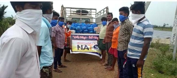 కరోనా నియంత్రణకు విధించిన లాక్డౌన్తో వలస కూలీలు తీవ్రంగా ఇబ్బందులు పడుతున్నారు. తెలుగునాట వలస కూలీల పరిస్థితి తెలుసుకున్న ఉత్తర అమెరికా తెలుగు సంఘం నాట్స్ తన వంతు సాయం చేసేందుకు ముందుకు వచ్చింది. శ్రీకాకాళం జిల్లా సంతబొమ్మాళి మండలం పెద్ద మర్రిపాడు గ్రామంలో 100 కుటుంబాలకు నాట్స్ నిత్యావసరాలను పంపిణీ చేసింది. ఇక్కడ పరిస్థితిని సెయింట్ లూయిస్ పెద్దలు, స్థానిక తెలుగు సంఘం (TAS Secretary) రమేష్ కొందముట్టి, నాట్స్ ప్రెసిడెంట్ శ్రీనివాస్ మంచికలపూడి దృష్టికి తీసుకురావడంతో ఆయన స్పందించి తన వంతు సాయం చేశారు.