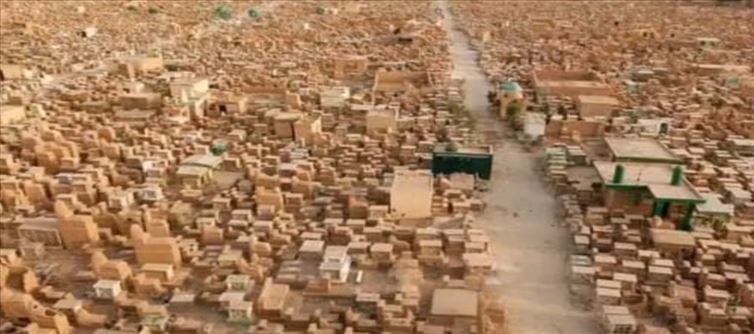 కాగా ఇది ఇరాక్ లోని నజాబ్ ప్రాంతంలో ఉంది అని చెప్పాలి. దీన్ని వాది అల్ సలాం అని పిలుస్తూ ఉంటారు. అంటే శాంతి లోయ అని అర్థం వస్తూ ఉంటుంది. అయితే గతంలో రోజుకి ఇక్కడ 80 నుంచి 120 మందిని దహనం చేస్తూ ఉండేవారట. అయితే ఇస్లామిక్ స్టేట్ స్వాధీనం చేసుకున్న తర్వాత దహనాలు ఆపి ప్రస్తుతం ఖననం చేస్తున్నారు అన్నది తెలుస్తుంది. అయితే ప్రస్తుతం రోజుకి 150 నుంచి 200 మందికి ఈ స్మశానవాటికలలోనే కణం చేస్తున్నారట కదా 14000 ఏళ్ల నుంచి కూడా ఈ అతి పెద్ద స్మశాన వాటికలో దాదాపు 5 మిలియన్ల మృతదేహాలను ఖననం చేసినట్లు తెలుస్తోంది.
