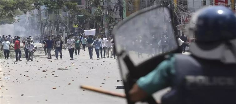 हालात गंभीर होने के बाद सरकार ने कर्फ्यू लगा दिया और इंटरनेट बंद कर दिया. रविवार शाम 6 बजे से अनिश्चित काल के लिए कर्फ्यू घोषित कर दिया गया. सरकार ने सोमवार से तीन दिन की सामान्य छुट्टी की भी घोषणा की। रविवार सुबह झड़पें हुईं जब प्रदर्शनकारियों ने हैसना के इस्तीफे की एक सूत्री मांग के साथ स्टूडेंट्स अगेंस्ट डिस्क्रिमिनेशन के तत्वावधान में असहयोग कार्यक्रम शुरू किया, जिसे अवामी लीग, छात्र लीग और जुबो लीग के कार्यकर्ताओं के समर्थकों के विरोध का सामना करना पड़ा। . प्रदर्शनकारियों ने राजमार्गों को अवरुद्ध कर दिया, जबकि उपद्रवियों ने कई वाहनों को आग लगा दी और एम्बुलेंस में तोड़फोड़ की। इसके अलावा, हिंसा के दौरान सत्तारूढ़ अवामी लीग के कार्यालय और पुलिस स्टेशनों को निशाना बनाया गया।