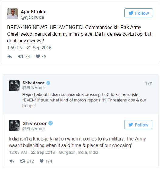 Sometime back rumours spread that Pak is mobolising army towards the border and also shut down air traffic and flew in F 16s. Pak army chief dared India that they have already identified targets in India. Now unconfirmed reports say India already avenged the death of 18 soldiers in Uri.