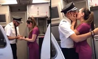 పైలట్ చొరవకు మొదట ఆమె ఆశ్చర్యచకితురాలైనా.. ఆపైన అతడి ప్రపొజల్‌ కు ఒకే చెప్పింది. సినిమాలో సీన్‌ లా ప్రయాణికులందరూ చూస్తుండగానే పైలట్‌, తన ప్రియురాలికి రింగ్‌ తొడిగి తన ప్రేమను గెలిపించుకున్నాడు. ఆ తరువాత విమానంలో అందరూ చప్పట్లు కొడుతుండగా ఆ ప్రేమికులిద్దరూ కౌగిలించుకుని ముద్దుల్లో మునిగితేలారు. ఆ వెంటనే విమానంలోని ఫోన్‌ తీసుకుని తన వేలికి ఉన్న ఉంగరాన్ని చూపిస్తూ ఎయిర్‌ హోస్టెస్‌ తన సంతోషాన్ని షేర్‌ చేసుకుంది.