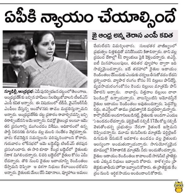 ఆ రోజు ఏపీకి న్యాయం చేయాల్సిందేనని చెప్పి జై ఆంధ్ర నినాదాన్ని క‌విత వినిపించారు.ఆ త‌రువాత కూడా యువ ఎంపీ రామూకు అండ‌గా నిలిచి అంద‌రి మ‌న్న‌న‌లూ అందుకున్నారు.త‌మ్ముడూ మీరు బాగా మాట్లాడుతున్నారు వెరీ గుడ్ అని ఆ త‌ల్లి ఆ రోజు పిలిచి మ‌రీ ఆశీర్వదించారు అని పొంగిపోతారు యువ ఎంపీ రామూ..ఇది ఓ ప్రాంతానికి మ‌రో ప్రాంతానికి ఉన్న స‌ఖ్య‌తకు సంకేతం..తెలంగాణ చంద్రుడా నీకు వంద‌నం.. జేజేలు రామయ్యా! క‌విత‌క్కా ! మీకో కృత‌జ్ఞత ఓ ధ‌న్య‌వాద!