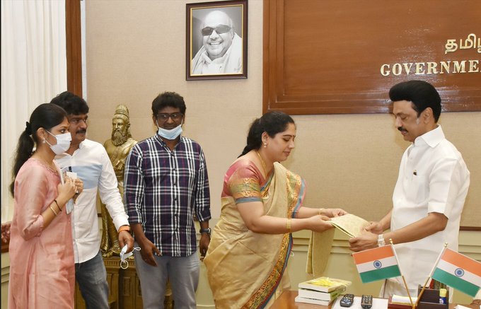 In this context, actor Vivek's wife Arutchelvi and daughter amrita Nandini met tamil Nadu chief minister MK stalin at the General secretariat and demanded that the road on the street where he lived be named after actor Vivek.