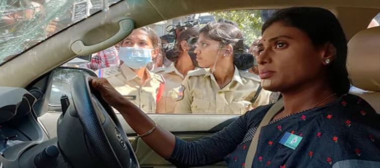 On this occasion, the police arrived at Sharmila's car to arrest her and locked the door inside her. There was a traffic jam for a long time. With the help of cranes, the police moved Sharmila's car to the Panjagutta police station. So she was kept in Panjagutta police station and arrested. Meanwhile, Sharmila's campaign van was vandalized by Sharmila's campaign vehicle in protest of Sharmila's hot comments against local TEARS mla Peddireddy sudarshan Reddy in the context of Sharmila's padayatra in the joint warangal district.