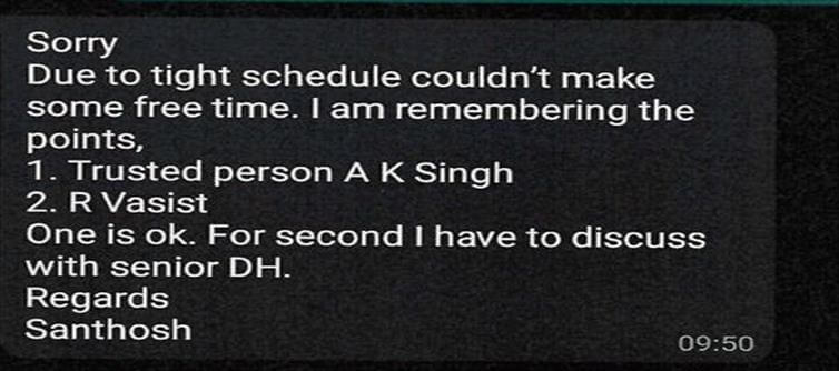 Although it was not immediately known what was in the conversation, the fact that Santosh had a direct relationship with the accused made it clear that the top bjp leader was involved in the embezzlement case. "We have submitted the evidence to the court. It will take some more time for the conspiracy to be exposed. There is no chance of Santosh escaping and then all the big heads in the bjp will be exposed," trs sources said.