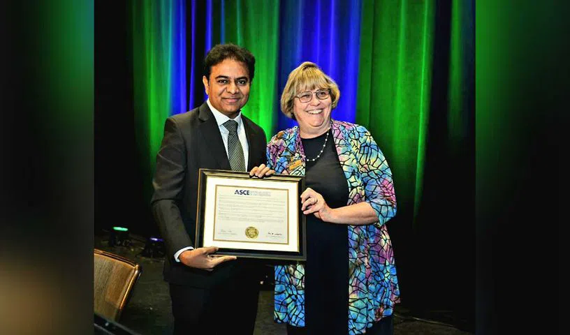 The American Association of Civil Engineers (ASCE), the oldest engineering association in the united states of America and one that was formed in 1852, has honored Telangana's kaleshwaram Lift Irrigation Project as a lasting emblem of technical development and collaboration. At the World Environmental and Water Resources congress in Nevada, US, on Monday, IT and industries minister KT Rama Rao received the plaque from the ASCE awarding the project with this distinguished accolade.